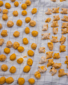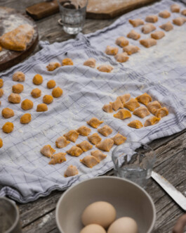 There are various different types – Gnocchi, Gnocchetti, Gnudi, Malfatti (for „badly made“ but in a lovely way, when they don‘t come out as beautiful but still delicious). You can always vary the ingredients and use pumpkin in autumn, then potato in summer and winter or add spinach, ricotta and semolina to get a different taste. Same for the use of additional vegetables like spinach of mushrooms or sauces.